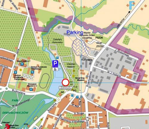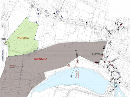 Schemat organizacji ruchu w dniach 30 października – 2 listopada 2015 roku w rejonie cmentarzy przy ul. Kościelnej w Mińsku Mazowieckim z uwzględnieniem miejsc postojowych – parkingów.