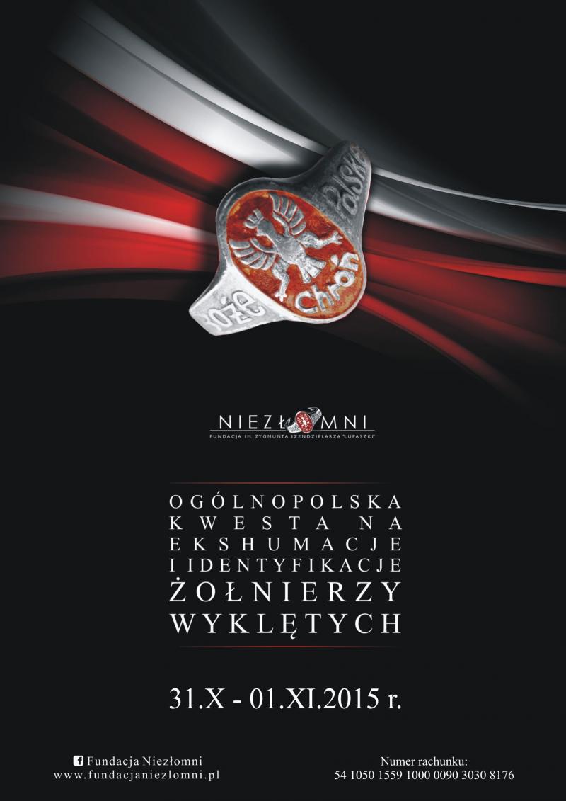 Społeczny Komitet "Dziękujemy za Wolność" zachęca do udziału w "Kweście na ekshumacje i identyfikację Żołnierzy Wyklętych". Kwesta odbędzie się na cmentarzach całej Polski w dniach 31.10-1.11.2015r.
