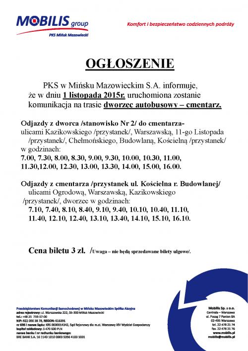 Komunikacja na trasie dworzec autobusowy – cmentarz 1 listopada |