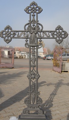 3. Unikatowy, żeliwny krzyż z drugiej połowy XIX wieku w centralnym jego miejscu z motywem anioła zamiast figury Jezusa Chrystusa, poświęconym osobie nieznanej.