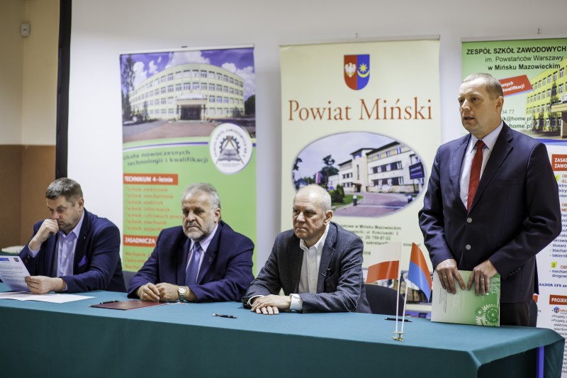 W trakcie uroczystości miały miejsce wystąpienia p Marka Węgłowkiego dyrektora GRAHAM PACKAGING POLAND, który podkreślił wagę podjętej współpracy i możliwości rozwoju firmy dzięki organizowaniu wspólnych procesów edukacji zawodowej. Starosta Miński p. Antoni Jan Tarczyński zwrócił szczególną uwagę na rolę zakładów pracy w budowaniu i rozwijaniu potencjału uczniów Zespołu, a tym samym rozwoju lokalnego i regionalnego rynku pracy. Wicestarosta p. Krzysztof Płochocki przedstawił komplementarność wiedzy uczniów zdobytej w szkole z wiedzą uzyskaną w rzeczywistych warunkach przedsiębiorstwa, posiadającego najnowocześniejszą technologię projektową i produkcyjną.