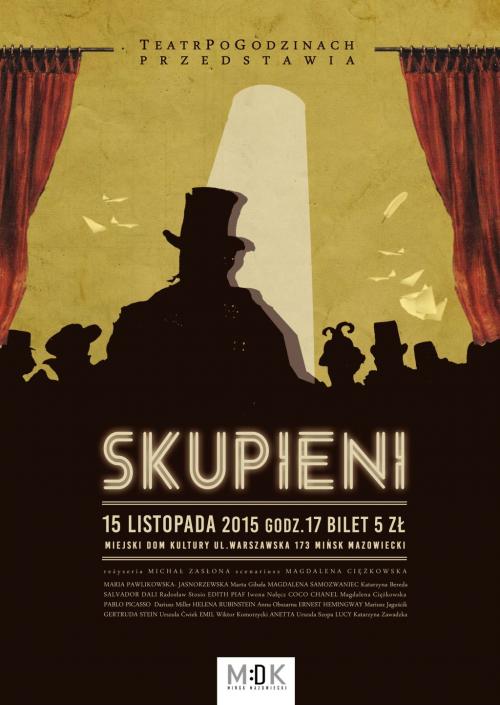 Paryska bohema artystyczna dwudziestolecia międzywojennego. Skupieni Pasjonaci. Wielkie nazwiska. Wielkie talenty. Ogromne Skupienie. Jak bardzo można być skupionym… na sobie? 15 listopada 2015r., godz. 17.00, bilet 5zł
