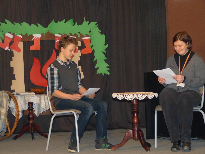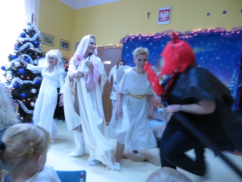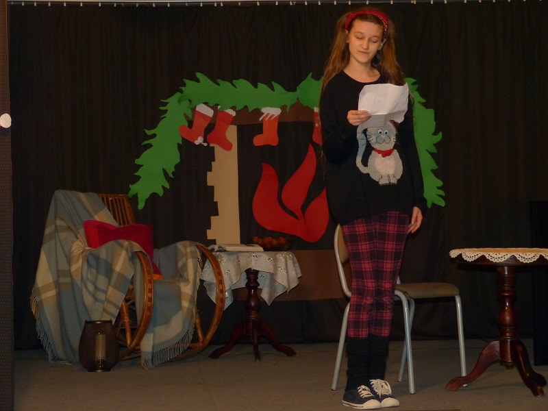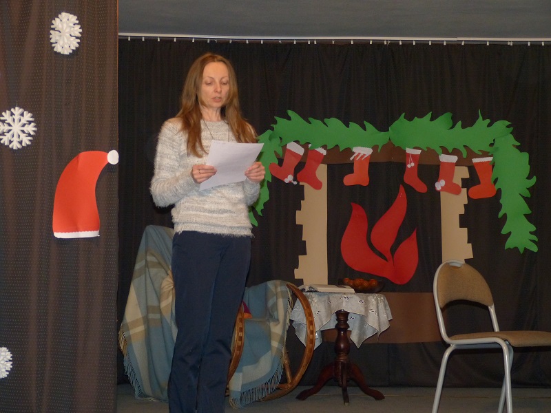 Po części oficjalnej zebrani w sali gimnastycznej wzięli udział w lekcji otwartej przeprowadzonej przez opiekunkę izby regionalnej, panią Agnieszkę Skalską, która przybliżyła obecnym zwyczaje i tradycje bożonarodzeniowe Mińska Mazowieckiego i okolic.