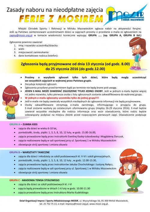 Uwagi i opinie do projektu uchwały, który dostępny jest na stronie internetowej Miasta Mińsk Mazowiecki i w pokoju nr 4 Urzędu Miasta Mińsk Mazowiecki należy kierować do Burmistrza Miasta Mińsk Mazowiecki w terminie do 22 lutego 2016 r., w formie pisemnej lub za pośrednictwem poczty elektronicznej na adres: andrzej.ryszawa@umminskmaz.pl