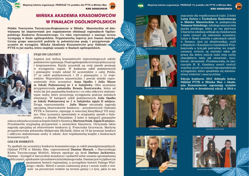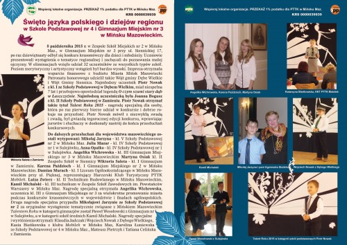 15 grudnia 2015 roku cieszyliśmy się z ogromnego sukcesu – po raz trzeci udało nam się uzbierać największą górę groszy na Mazowszu. Tego dnia gościliśmy przedstawicielkę Towarzystwa „Nasz Dom”, która w czasie uroczystego apelu przekazała dyplom z gratulacjami za zebranie największej kwoty na Mazowszu w XV edycji akcji. Świętowały z nami pani Zofia Markowska - radna Mińska Mazowieckiego oraz pani Bożena Macheta - inspektor do spraw oświaty Urzędu Miasta.