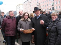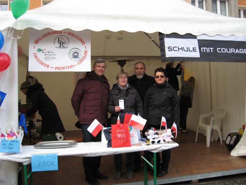 W czasie wizyty w Magdeburgu delegacja naszej szkoły miała możliwość uczestniczenia w przedsięwzięciu organizowanym poraz ósmy przez stolicę landu Sachsen-Anhalt „Mile demokracji”. Tegorocznej imprezie przyświecało hasło „Magdeburg-miasto dla wszystkich”. Na uroczystość przybył premier landu Sachsen-Anhalt p. dr Reiner Haselhoff i przewodniczący parlamentu landu Sachsen-Anhalt p. Dieter Steinecke, a otwarcia dokonał nadburmistrz Magdeburga p. dr Lutz Truemper. Imreza ta odbywa się zawsze w pierwszą sobotę po 16 stycznia lub 16 stycznia, jeżeli jest to sobota. Tego bowiem dnia 1945 roku, rozpętana przez Niemcy II wojna światowa wróciła do Magdeburga. Ku pamięci tamtego wydarzenia rozbrzmiały w mieście dzwony wszystkich kościołów w Magdeburgu, a ludzie zatrzymali się. Dlatego 16 stycznia 2016 roku organizatorzy przedsięwzięcia pragneli zdecydowanie powiedzieć, że w Magdeburgu nie ma miejsca dla nazizmu i rasistowskiej nagonki oraz zapewniić, że Magdeburg jest miastem, w którym ludzie mogą żyć zgodnie niezależnie od pochodzenia i statusu. „Pozwólcie nam z cywilną odwagą i stanowczością przeciwstawić się nazizmowi i rasizmowi”- nawoływali organizatorzy ze sceny.