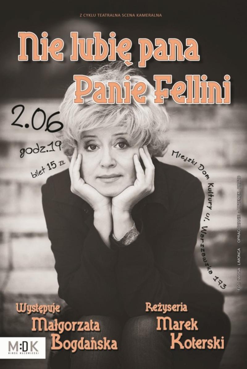 Jest to monodram o Giuliettcie Masinie, mojej ulubionej włoskiej aktorce, zdobywczyni dwóch Oskarów i - prywatnie - żony Federica Felliniego. Monodram jest kolejną produkcją naszego Teatru w walizce, którego jedynymi stałymi elementami są osoba bohaterki oraz walizka rekwizytów i kostiumów: tutaj - m.in. kapelusz FF, ręczny megafon, trąbka, buty do stepowania, bębenek Gelsominy i - oczywiście - czerwony nos klauna... Monodram rozpoczyna się pierwszym spotkaniem Giulietty i Federica, a kończy śmiercią obojga... i "zmartwychwstaniem" Giulietty. Po drodze - wędrujemy przez ich wspólne życie i kolejne plany filmowe: "La strada", "Noce Cabirii", "Ginger i Fred" - opisuje swój monodrat Małgorzata Bogdańska.