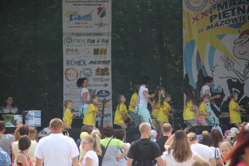 W tegorocznej edycji Mazowieckiej Piętnastki i Mazowieckiej Piątki bardzo miło było nam gościć w Mińsku Mazowieckim zawodników z całego świata. Oprócz Polaków na starcie stanęli zawodnicy z Czech, Węgier, Ukrainy, Białorusi, Kenii, którzy pokazali jak walczyć w trudnych warunkach pogodowych - w niebywały upał i słońce. Od godziny 8.30 wszyscy zawodnicy mogli w biurze zawodów odbierać pakiety startowe, po czym po krótkiej rozgrzewce przeprowadzonej przez studio Fit and Joy na czele z energetyczną Eweliną Kaską Łobodowską, punktualnie o godzinie 10.30 biegacze usłyszeli wystrzał z pistoletu startowego, który padł z rąk Anny Jesień – wielokrotnej, brązowej medalistki Mistrzostw Europy i Świata! Jako pierwszy, dystans 5 km pokonał Wydiffe Biruot, a tuż za nim Jurii Kykhopen oraz Dmutro Dudovodiuk. Czwarte miejsce, a pierwsze wśród Polaków, zajął zawodnik GKS Wilga Garwolin Robert Głowala. Wśród kobiet triumfowała zawodniczka Otwock Miasto z Klimatem Ewa Jagielska, zaś na kolejnych lokatach uplasowały się Zita Kacser i Olesia Dudovodiuk.