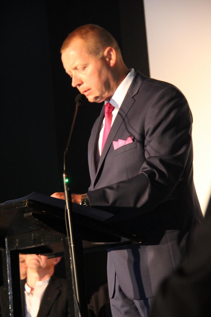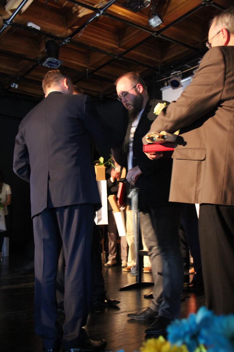 Następnie Andrzej Stasiuk odebrał z rąk burmistrza Marcina Jakubowskiego statuetkę gwiazdy, a Elżbieta Sieradzińska wręczyła mu zbiór listów nadesłanych na konkurs.