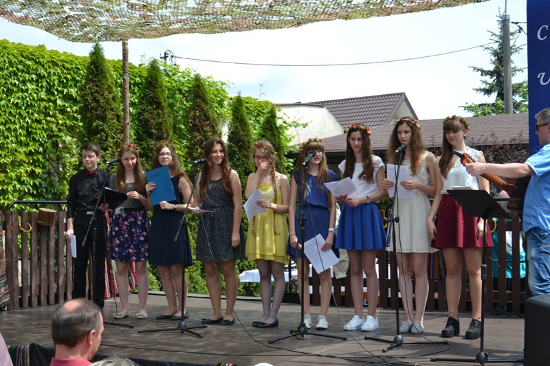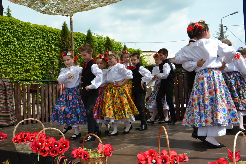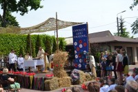 Nasz młody zespół ludowy rozwija się i dzieli się z nami swymi umiejętnościami, we wspaniały sposób pokazując bogactwo i koloryt kultury regionu. Doskonałym dopełnieniem charakteru pikniku, który można śmiało nazwać „Na ludową nutę”, były stragany wzbudzające zainteresowanie swoim różnorodnym, tradycyjnym wystrojem, jak też asortymentem, często wykonanym przez same dzieci lub rodziców. Mogliśmy skosztować swojskiego chleba z równie swojskim smalcem i ogórkiem, pierogów, pyz czy ciasta drożdżowego. Fantastyczną zabawą okazało się plecenie ze słomy chociażby kurek czy królików pod czujnym okiem specjalistek w tej dziedzinie.