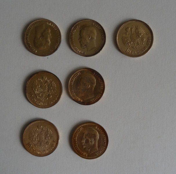 7 szt. – 10 rubli, carska Rosja, lata: 1899, 1900, 1901, 1902