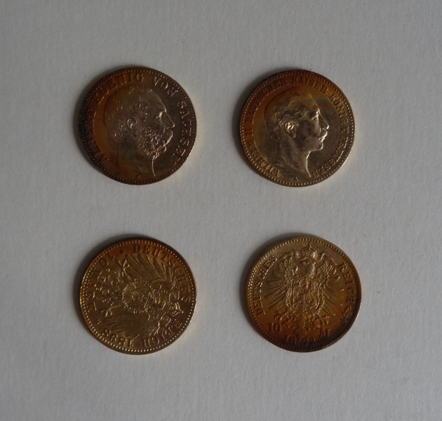 4 szt. – 10 marek, Cesarstwo Niemieckie, lata: 1872, 1893, 1898