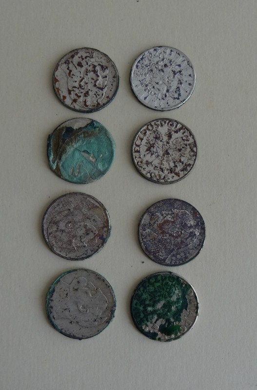 24. Monety miedziane – razem: 20 szt., kopiejkowe; stan bardzo zły (zlepki).