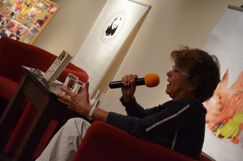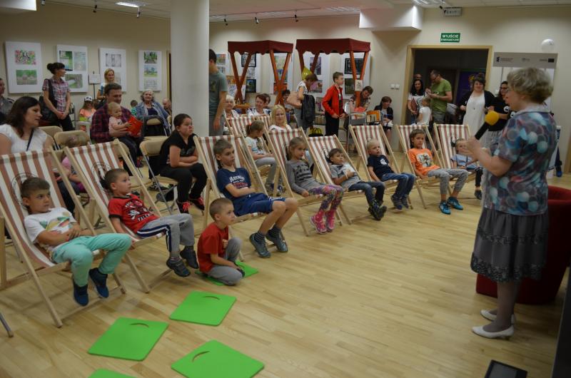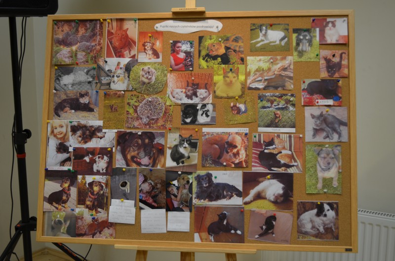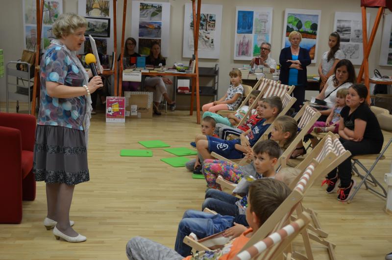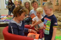 Tematem przewodnim tegorocznych wakacji w bibliotece są relacje ludzi ze zwierzętami, dlatego 7 lipca odwiedziła nas Dorota Sumińska – weterynarz, psycholog zwierząt, autorka wielu książek oraz programów telewizyjnych i radiowych. W rozmowie z prowadzącym Pani Dorota Sumińska zwracała uwagę na istotne problemy. Opowiadała, że relacje ludzi ze zwierzętami niestety często przypominają układ człowiek – niewolnik. Tymczasem każda istota żywa zasługuje na szacunek i wolność. Zachęcała także do adopcji psów ze schronisk. Z jej obserwacji wynika, że w krajach postrzeganych jako biedniejsze, stosunek ludzi do zwierząt jest bliższy i cieplejszy. Sama ma wiele psów i kotów we własnym gospodarstwie domowym, jednak nie przełamuje barier w kontaktach ze zwierzętami na siłę. Czasami się zdarza, że między nami, a tą drugą istotą po prostu nie ma sympatii i wówczas należy odpuścić. Przyjaźń ze zwierzęciem, tak jak i z drugim człowiekiem, wymaga czasu i zaangażowania. Na koniec autorka podpisywała uczestnikom swoje książki, a na najmłodszych czekał poczęstunek w postaci smakołyków w kształcie zwierzątek. Dodatkową atrakcją spotkania była umieszczona w sali tablica ze zdjęciami pupili przysłanymi do biblioteki przez naszych czytelników. Najciekawsze zdjęcie zostało wyróżnione i nagrodzone książką autorki.