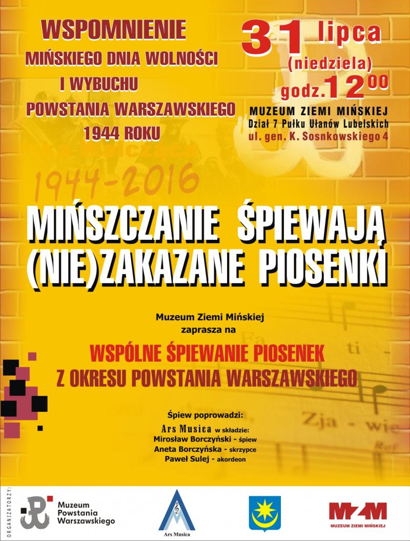 W celu oddania hołdu i uczczenia pamięci bohaterskich żołnierzy Polskiego Państwa Podziemnego oraz mieszkańców stolicy, poległych i zamordowanych w czasie Powstania Warszawskiego w dniu 1 sierpnia 2016 r. o godz. 1700 na terenie miasta Mińsk Mazowiecki zostaną włączone syreny alarmowe (sygnał ciągły trwający 1 minutę).
