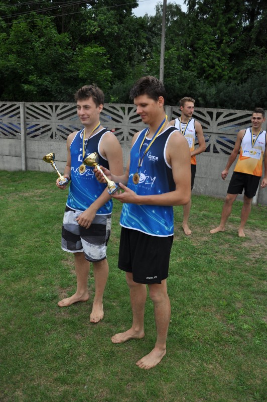 15 lipca na piaszczystych boiskach na Stadionie Sportowym MOSiR przy ul. Sportowej 1 w Mińsku Mazowieckim odbył się pierwszy z dwóch zaplanowanych Turniejów Wakacyjnych Siatkówki Plażowej kat. szkół gimnazjalnych. Do rozgrywek przystąpiły 4 męskie oraz 2 damskie ekipy, które. grały dwa sety do 15pkt, a w przypadku remisu - tie break również do 15 oczek. Po zaciętych pojedynkach grupowych do półfinałów awansowały Debeściaki, Makoska Team, Dream Team oraz Sąsiedzi. Szybkie mecze 2-0 w obu pojedynkach wyłoniły finalistów, czyli Dream Team i Debeściaki, zaś Makoska Team zmierzyła się o 3 miejsce z Sąsiadami. Finałowe pojedynki stały na bardzo wysokim poziomie, ale bezkonkurencyjni okazali się Lech Bieliński i Piotrek Krzyżanowski z Dream Team, którzy nie dali szans Debeściakom pokonując ich 2-0, 3 miejsce należało dla Sąsiadów. Zwycięzcy zostali udekorowani pamiątkowymi pucharami, medalami oraz nagrodami rzeczowymi. Kolejny turniej dedykowany szkołom gimnazjalnym odbędzie się 19 sierpnia i już dziś serdecznie zapraszamy do rozgrywek. Ten weekend to nie koniec siatkarskich zmagań, niedziela to rozgrywki open mężczyzn do których przystąpiło 8 ekip między innymi z Mrozów, Mińska Mazowieckiego, Siedlec i Halinowa. Tutaj już zawodnicy grali systemem brazylijskim do 2 przegranych pojedynków - również 2 sety do 15pkt. Po ok. 3 godzinach i rozegraniu 14 zaciętych pojedynków poznaliśmy triumfatorów. Pierwsze miejsce bezapelacyjnie dla duetu Kuźniarski/Sekular z ekipy GOSiR Mrozy, 2 lokata Żaby na liściu, a na najniższym stopniu podium stanęli Dwa Michały. Tradycyjnie dla zwycięzców puchary, medale i nagrody rzeczowe ufundowane przez MOSiR. Kolejny turniej odbędzie się już 21 sierpnia więc zachęcamy do wysyłania zgłoszeń zapisy@mosir.org.pl. Zgłoszenia do turniejów tylko drogą elektroniczną!