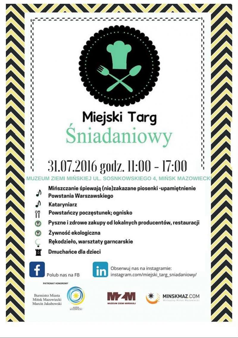31 lipca br. na terenie Muzeum Ziemi Mińskiej Dział 7 PUL wspominamy Miński Dzień Wolności, Powstanie Warszawskie... i w tym klimacie zapraszamy na IV Miejski Targ Śniadaniowy