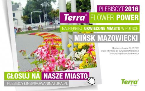 Mińsk Mazowiecki bierze udział w plebiscycie organizowanym przez Terra Flower Power na "Najpiękniej Ukwiecone Miasto w Polsce". Każdego dnia można oddać jeden głos. Głosowanie trwa do 29 sierpnia 2016 roku.