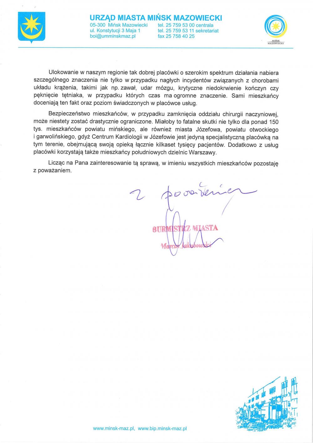 List intencyjny dot. wsparcia działalności Centrum Kardiologii w Józefowie |