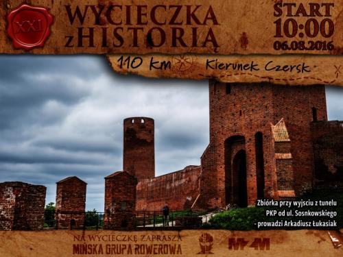 Serdecznie zapraszamy wszystkich w sobotę 6 sierpnia na XXI Wycieczkę z Historią! :) Startujemy klasycznie przy wyjściu z tunelu PKP od ul. Sosnkowskiego o godzinie 10.00. Tego dnia wspólnie przejedziemy dłuższą trasą, bo około 110 km w kierunku miejscowości Czersk. Na miejscu zwiedzimy m.in. Zamek Książąt Mazowieckich, który robi niesamowite wrażenie. Do zobaczenia!