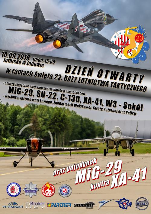 · Niezwykle ciekawie zapowiada się ostatni punkt bloku dynamicznego – swój drugi w historii pokaz przedstawi zespół „Xtreme Sky Force”. Będzie to duet składający się z 2 samolotów - XA-41 pilotowanego przez Artura Kielaka - pochodzącego z Mińska Mazowieckiego mistrza Polski w akrobacji samolotowej advanced oraz MiGa-29, za sterami którego zasiądzie ppłk Piotr „Kuman” Iwaszko - dowódca grupy działań lotniczych z 23. Bazy Lotnictwa Taktycznego. Publiczność będzie mogła przekonać się na własne oczy jak wygląda walka najagresywniejszego samolotu akrobacyjnego z 11-tonowym wojskowym myśliwcem. Jej fragment - z perspektywy XA-41 - można znaleźć na YouTube.