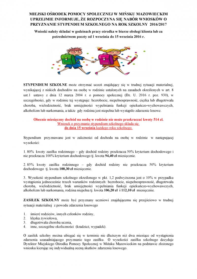 Termin składania wniosków o przyznanie pomocy Burmistrz Miasta Mińsk Mazowiecki ustalił do 9 września 2016 r.