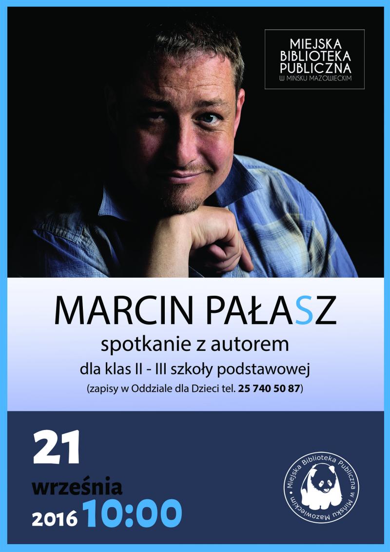 21 września, o godz. 10:00 gościem Miejskiej Biblioteki Publicznej będzie Marcin Pałasz, którego kariera pisarka rozpoczęła się niespodziewanie. Pierwszą książkę napisał w jednym egzemplarzu dla swojego chrześniaka Krzysia. Niedługo potem wydawnictwo „Nasza Księgarnia” zakupiło prawa do jej wydania. „Opowieści z Krainy Potworów” zostały wydane w 2004 r. i od razu przypadły do gustu młodym czytelnikom. Autor jest laureatem Ogólnopolskiej Nagrody Literackiej im. Kornela Makuszyńskiego i dwukrotnym zdobywcą wyróżnienia w tym konkursie.