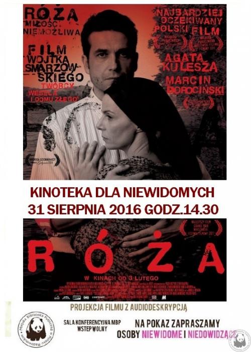 Serdecznie zapraszamy osoby niewidome oraz niedowidzące na koleją edycję Kinoteki dla niewidomych. W dniu 31 sierpnia o godzinie 14.30 odbędzie się pokaz filmu "Róża" z audiodeskrypcją.