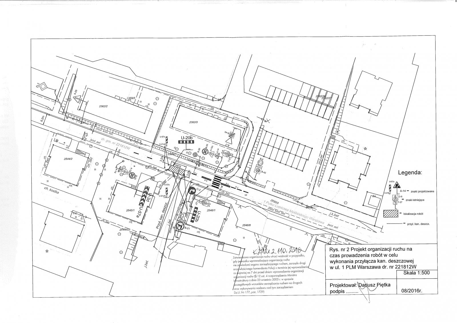 Informujemy, że w dniach od 26.08.16 do 27.08.2016r. spodziewane są utrudnienia na ul. 1 PLM Warszawa przy budynku pod nr 6, związane z wykonaniem przyłącza kanalizacji deszczowej. W związku z powyższym przewiduje się w miejscu prowadzenia robót zwężenie ulicy do jednego pasa.