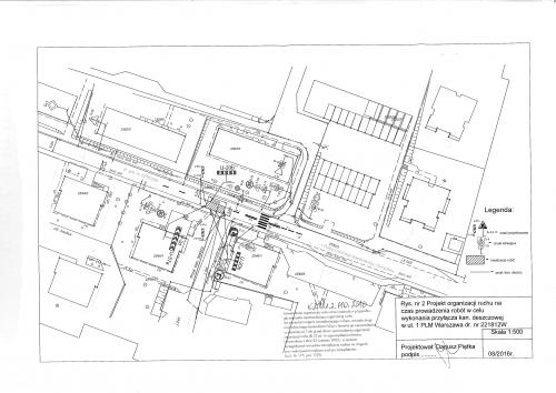 W czasie prowadzenia robót budowlanych obowiązywały będą objazdy zgodnie z organizacją ruchu na czas budowy zatwierdzoną przez Starostę Mińskiego.