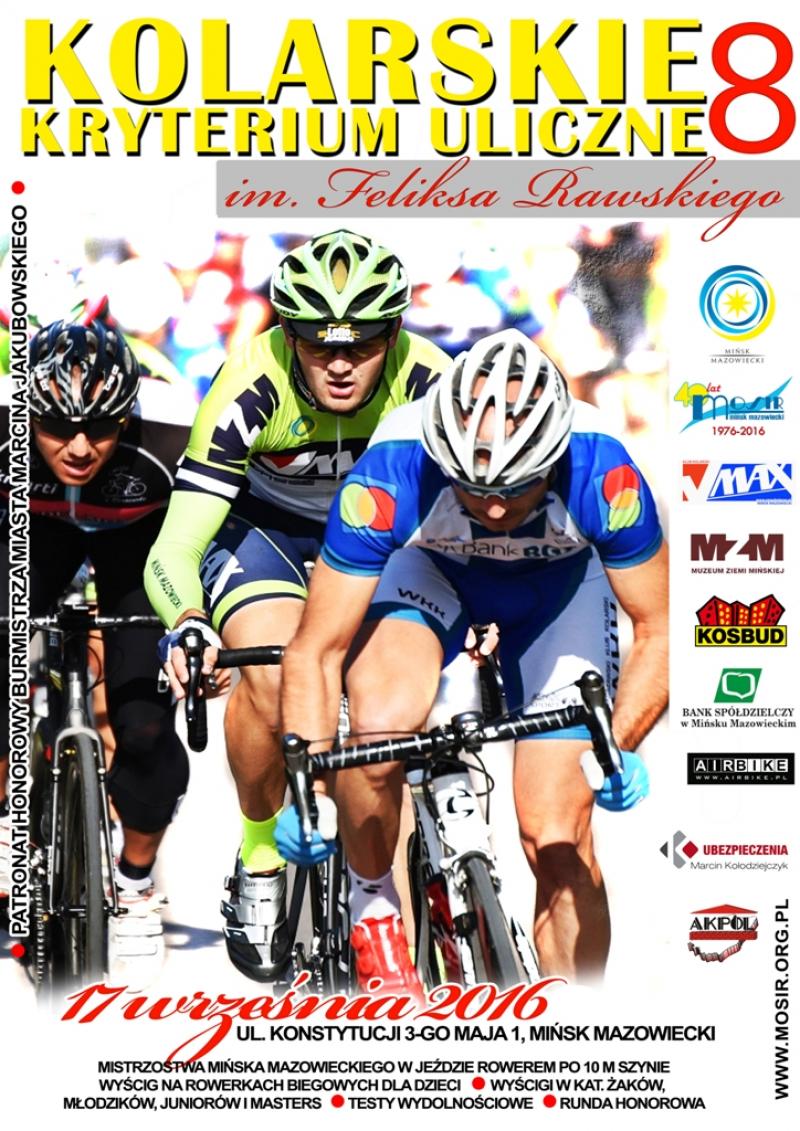 To już ósmy rok z rzędu odkąd do Mińska Mazowieckiego regularnie zjeżdżają krajowi i zagraniczni kolarze szosowi. Kolarskie Kryterium Uliczne - Memoriał Feliksa Rawskiego to doskonale znana i wpisana do ogólnopolskiego kalendarza "Masters PZKOL" kolarska impreza rozgrywana na ulicach naszego miasta. W ocenach fachowców jest to wyścig trudny i wymagający. Po pierwsze charakter trasy faworyzuje sprawnych technicznie kolarzy, którzy umieją radzić sobie z licznymi ciasnymi rondami pokonywanymi na dużej prędkości. Po drugie forma w jakiej rozgrywany jest wyścig, czyli "kryterium uliczne", wymusza na zawodnikach czujną, pełną napięcia i koncentracji agresywną jazdę. Tu liczą się szybkie decyzje i błyskawiczna reakcja na ataki rywali. Trzecim powodem stanowiącym o randze imprezy jest coroczna mocna obsada najszybszych zawodników, co zawsze wyznacza wysoki poziom sportowy. Memoriał Feliksa Rawskiego od 8 lat jest wizytówką mińskiego kolarstwa wyczynowego. Każdego roku okrasą dla rywalizacji są popisy kolarzy Klubu Kolarskiego V-MAX Mińsk Mazowiecki.