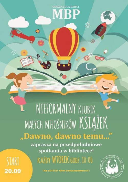 Miejska Biblioteka Publiczna w Mińsku Mazowieckim zaprasza najmłodsze dzieci na wtorkowe spotkania z książką w ramach KLUBIKU MAŁYCH MIŁOŚNIKÓW KSIĄŻEK "DAWNO, DAWNO TEMU..."