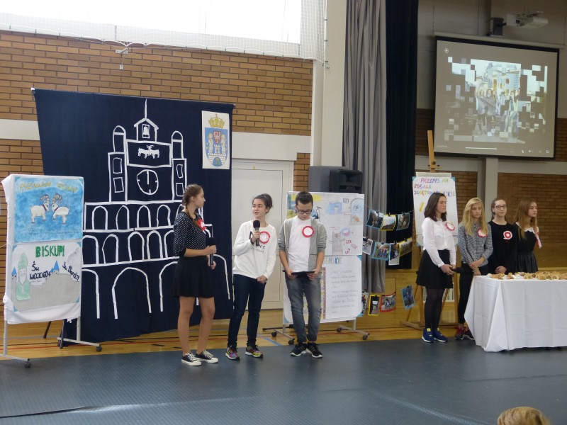 10 listopada drugo- i trzecioklasiści, a także nauczyciele, rodzice i goście zostali zaproszeni na PIKNIK PATRIOTYCZNY pod hasłem “Tu wszędzie jest moja ojczyzna”. Był on jednocześnie podsumowaniem realizowanego od września w gimnazjum papieskim projektu finansowanego z programu rządowego “Bezpieczna i przyjazna szkoła”. Pierwszoklasiści odwiedzili cztery regiony Polski i w czasie pikniku postanowili pokazać, czego się dowiedzieli, nauczyli, doświadczyli. Zabrali więc gości w emocjonującą podróż po kraju.