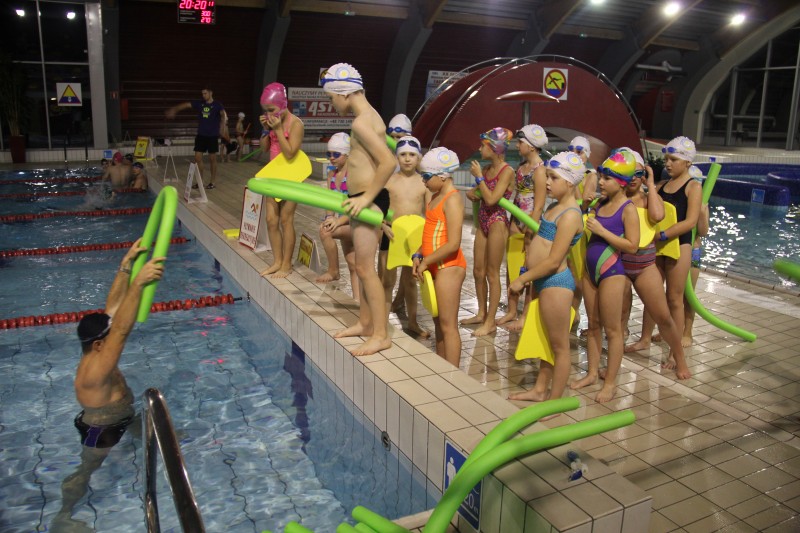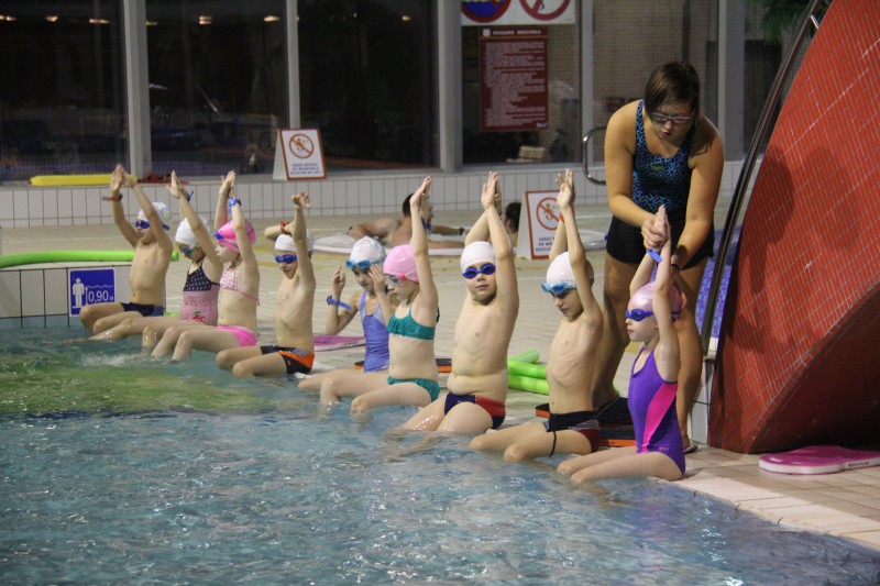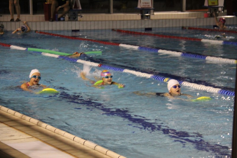 W dniu 9 listopada 2016 roku obserwowaliśmy postępy dzieci uczestniczących w nauce pływania w ramach projektu Umiem Pływać. Prowadzący projekt - instruktor Marcin Pilipczuk oraz instruktor - Iga Pszczółkowska z Fundacji Adrenalina z zaangażowaniem i humorem prowadzili zajęcia na dużym torze i baseniku. Dzieci prezentowały: skoki do wody, zdobyte umiejętności pływackie i nurkowe wyławiając kolorowe piłki i wodorosty do nurkowania z basenu. Oswojonym już nieco z wodą małym pływakom w białych czepkach i okularkach pływackich towarzyszył radosny śmiech i plusk wody.
