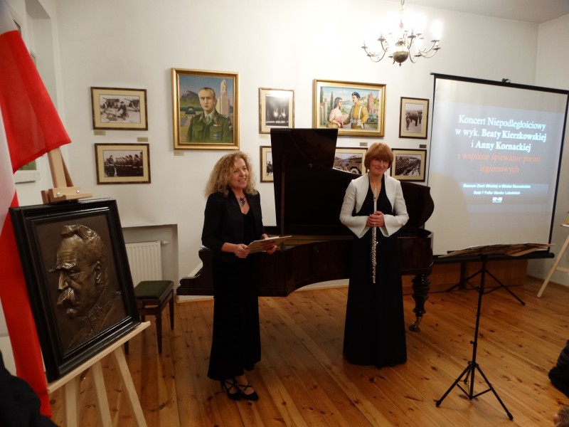 Obchody Narodowego Święta Niepodległości, jak co roku, miały swoje miejsce także w Muzeum Ziemi Mińskiej Dziale 7 Pułku Ułanów Lubelskich i tradycyjnie rozpoczęły się wzniesieniem toastu. Pierwszym punktem wieczornego programu był nastrojowy koncert Zespołu Grazioso w składzie: Anna Kornacka – fortepian i Beata Kierzkowska – flet (poprzeczny). Duet muzyczny wykonał m.in.: „Walc” (z filmu Ziemia Obiecana) W. Kilara, „Arię” E. Bozza, „Poloneza A-dur” op. 40 F. Chopina czy „Koncert a-moll” cz. 2 Largo J. S. Bacha. W następnej części spotkania licznie przybyli goście (zarówno dorośli, jak i dzieci) wspólnie zaśpiewali kilka pieśni ułańskich przy akompaniamencie zaproszonych artystek. Uroku całej imprezy dodawali przedstawiciele Towarzystwa Pamięci 7-go Pułku Ułanów Lubelskich im. gen. K. Sosnkowskiego prezentując się w tradycyjnych strojach „siódmaków”.