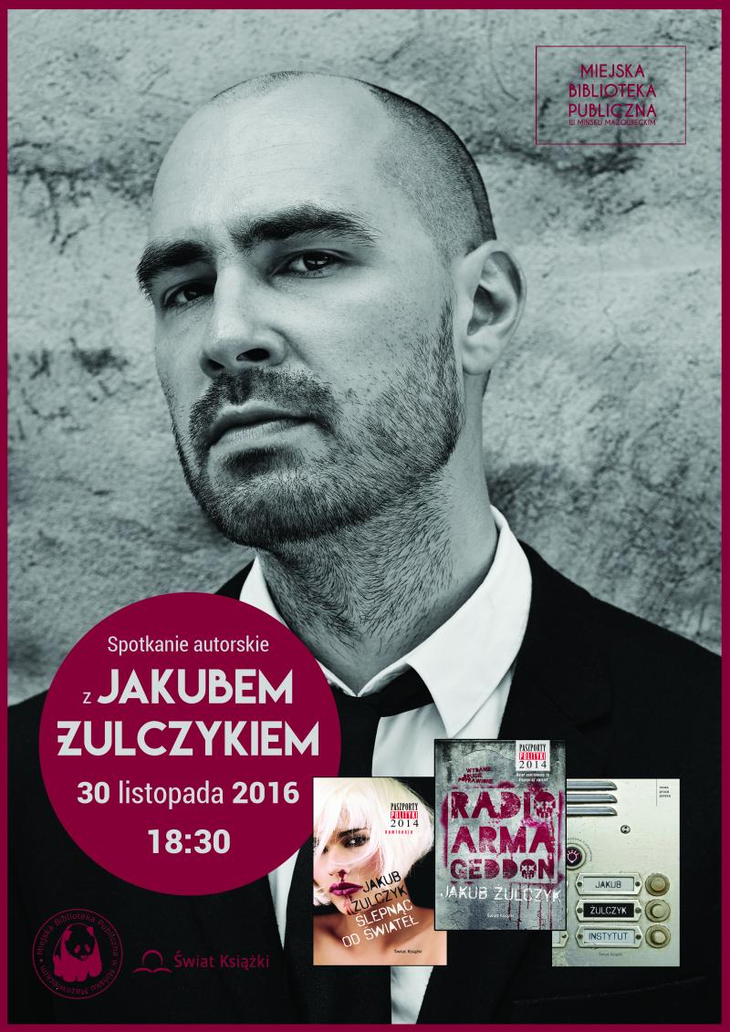 30 listopada, o godz. 18:30 biblioteka powita w swoich progach twórcę młodego pokolenia, który sam przedstawia się jako „pisarz, niezależny publicysta, recenzent, felietonista, bloger, konsument śmieci i wzorowy odbiorca kultury masowej”. Gościem wieczornego spotkania będzie Jakub Żulczyk, autor wielu znakomitych powieści, z których większość wpisuje się w konwencję horroru (np. „Instytut”, czy „Zmorojewo”). Jego najnowsza książka pt. „Ślepnąc od świateł” jest dynamiczną opowieścią, w której niespodziewane zwroty akcji i sploty wydarzeń prowadzą odbiorcę do refleksji, nad współczesnym znaczeniem słów, takich jak miłość, zaufanie, czy wierność. Rzeczywistość opisana przez autora jest zdeformowana i przejaskrawiona. Przenosi czytelnika w świat, w którym handlarz narkotyków pełni rolę lekarza dusz, a jego praca jest ludziom niezbędna do życia. Czyżby w obecnych czasach liczyły się już tylko pieniądze? Na ten temat porozmawiamy z autorem.