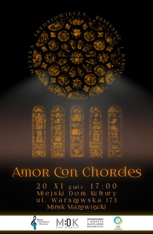 Poznański zespół Amor Con Chordes jest grupą wyjątkową, łączącą współczesną tradycję muzyczną ze sztuką minionych wieków. W ich repertuarze znajdują się kompozycje wspaniałych bardów (Turlough O’Carolan czy Niel Gow), tradycyjna muzyka celtycka, bretońska i katalońska, a także utwory autorskie instrumentalne oraz stylizacje pieśni renesansowych, z pięknymi, poetyckimi tekstami. Wielką gratką dla widowni jest możliwość usłyszenia i zobaczenia kopii prawdziwych instrumentów renesansowych i barokowych takich jak: lutnia, theorba, fidel czy skrzypce barokowe.