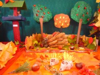 23 września świętowaliśmy Pierwszy Dzień Jesieni. Tego dnia wszystkie dzieci przyszły do przedszkola ubrane w jesiennych kolorach tj. pomarańczowym, czerwonym, brązowym. Potrawy przygotowane w przedszkolnej kuchni, które spożywały dzieci tego dnia, również były w jesiennych kolorach. Zorganizowany został również wernisaż prac plastycznych z jesiennego materiału przyrodniczego wykonanych przez dzieci wraz z rodzicami.