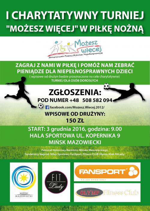 Wpisowe od drużyn po odliczeniu kosztów organizacji również w formie darowizny zostanie przeznaczone na cele Stowarzyszenia Możesz Więcej.