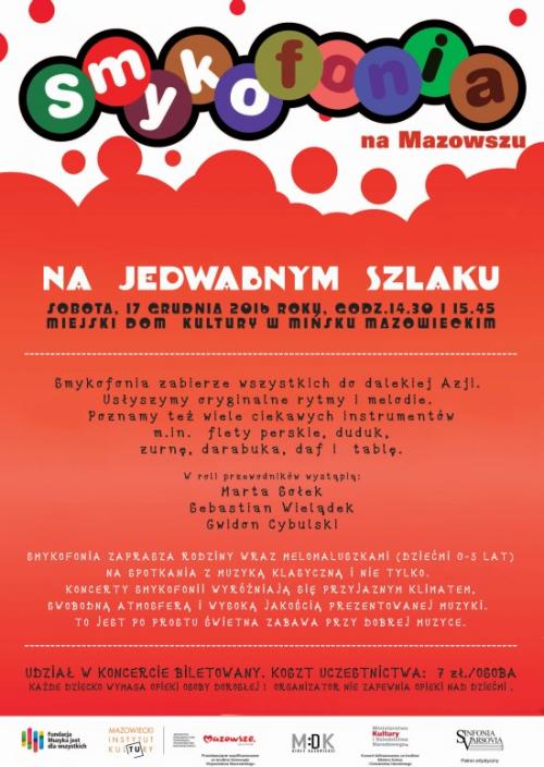 Smykofonia zabierze wszystkich do dalekiej Azji. Usłyszymy oryginalne rytmy i melodie. Poznamy też wiele ciekawych instrumentów m.in. flety perskie, duduk, zurnę, darabuka, daf i tablę.