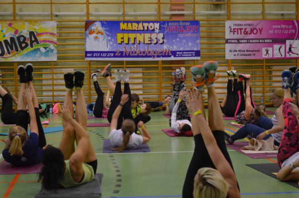 Już po raz trzeci Studio fitness FIT&JOY z Mińska Mazowieckiego zorganizowało Maraton fitness z Mikołajem. W tym roku wydarzenie miało miejsce 3 grudnia w godzinach 15.00-18.00. Głównym celem była zbiórka jak największej ilości plastikowych nakrętek na protezę rączki dla małego Kacperka. Imprezę sportową patronatem objął Burmistrz Miasta Marcin Jakubowski, a rozpoczęły ją małe skrzaty z grupy tanecznej Zumba Kids pokazem swych umiejętności.