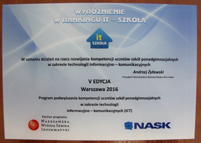 Biblioteka szkolna wzbogaciła się o 799 nowych woluminów, w tym 515 pozycji lektur szkolnych, 40 audiobooków oraz książki angielskojęzyczne na kwotę 15 tysięcy złotych. Ważne jest nie tylko to, że są to atrakcyjne dla uczniów książki, ale fakt, że wychowankowie mieli możliwość kształtowania księgozbioru biblioteki szkolnej poprzez składanie własnych propozycji zakupu nowych woluminów. W sferze dydaktyczno-wychowawczej dzięki podjęciu wielu akcji, organizowaniu imprez i konkursów, wzrosło zainteresowanie uczniów czytaniem. Wzbogaciła się też oferta edukacyjna szkoły. Uczniowie mają możliwość wypożyczania nowości książkowych o różnorodnej tematyce, w których poruszane są problemy dzieci i młodzieży. Pani dyrektor wyraziła nadzieję, że cykliczność realizowanych przedsięwzięć zapewni trwałość zadań projektowych.