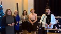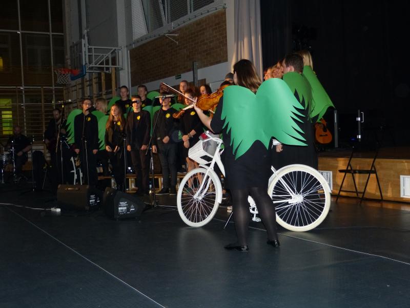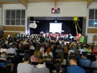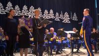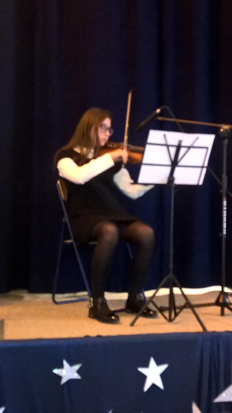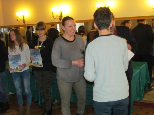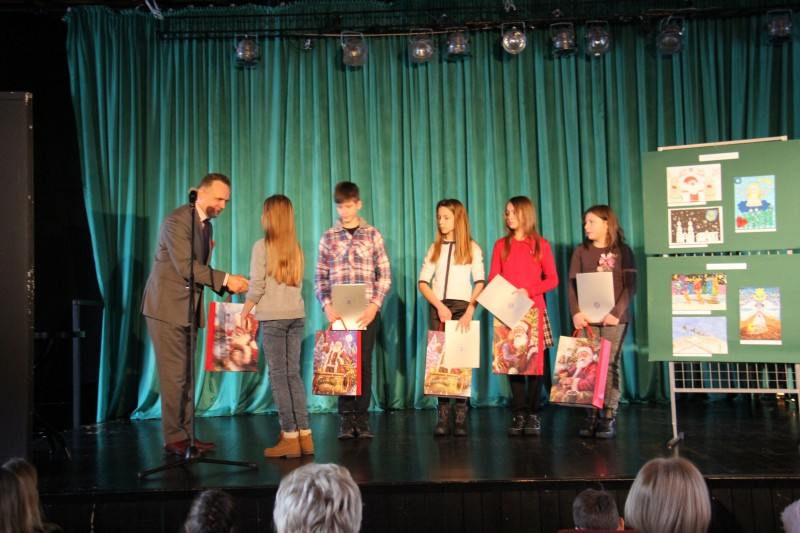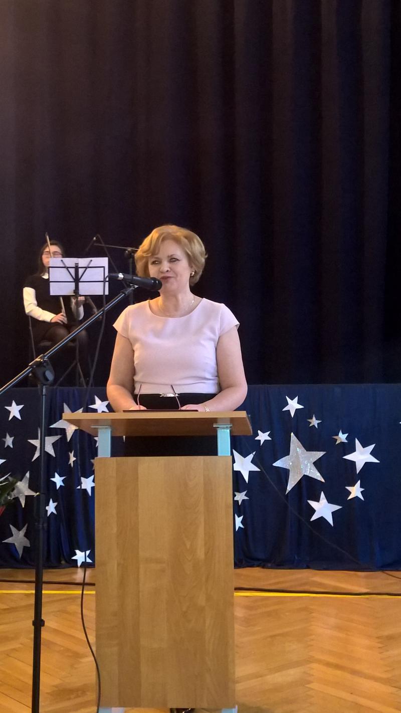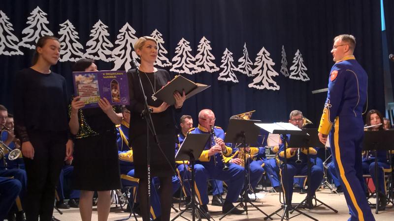 Gospodarz spotkania, pani Anna Zalewska zadbała również o artystyczną stronę uroczystości. Druga połowa grudnia to czas, w którym nie mogło zabraknąć przedświątecznych akcentów. Z tej okazji pani dyrektor zaproponowała widzom występ uczennicy Marleny Stal, która dała wirtuozerski pokaz gry na skrzypcach oraz koncert w wykonaniu Miejskiej Orkiestry Dętej pod batutą Marcina Ślęzaka. Podczas niespełna godzinnego przedstawienia orkiestra wraz ze swoimi solistkami (panią Justyną Kowynia-Rymanowską, panią Zofią Noiszewską i panią Karoliną Świętochowską) zaprezentowała różne kolędy i pastorałki, które wszystkich słuchaczy wprowadziły w klimat Świąt Bożego Narodzenia. Artystki zachęcały widownię do wspólnego kolędowania, a uczniowie chętnie włączyli się do koncertu. W podziękowaniu muzycy dostali od słuchaczy gromkie brawa.