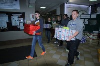 W ostatnim dniu akcji odbyło się wielkie pakowanie. Zgromadziliśmy aż 14 pudeł i udało nam się zrealizować całą listę potrzeb z naddatkiem! Produkty żywnościowe, kosmetyki, środki czyszczące, przybory szkolne, zabawki, żyrandole, zasłony, koce, pościel, kołdry, odzież, maszynka do golenia a przed wszystkim pralka oraz łóżko ze specjalnym materacem znalazły się w Paczkach i mamy nadzieje, że będą długo służyć obdarowanym.