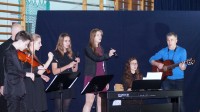 W wypełnionej po brzegi sali można było usłyszeć zarówno początkujących uczniów, jak i tych, którzy już czwarty rok poznają w szkole Yamaha różne style muzyczne i utwory zarówno z repertuaru muzyki klasycznej, jak i muzyki rozrywkowej. Świąteczny nastrój tworzyły pięknie grane i śpiewane kolędy. Swoim solowym występem zachwyciła Julia Dróżdż, która zaśpiewała m. in. piosenkę ze spektaklu „Metro” pt. „Uciekali”. Motywy świąteczne pojawiały się również w strojach występujących na scenie młodych artystów. Podczas koncertu rozstrzygnięty został także konkurs na najpiękniejszą muzyczną ozdobę choinkową, w którym mogli wziąć udział uczniowie i ich rodzice. I miejsce zajęła zawieszka Piotrusia Szostaka z programu „Szkraby i muzyka”, nagroda za II miejsce trafiła do Amelii Górki z klasy gitary klasycznej, zaś III miejsce zostało przyznane Radkowi Kuciowi uczącemu się grać na gitarze elektrycznej. Wszyscy pozostali uczestnicy konkursu otrzymali wyróżnienia za kreatywność i pomysłowe wykorzystanie motywów muzycznych w przygotowanych przez siebie zawieszkach choinkowych. Wszystkie prace można jeszcze oglądach w sekretariacie szkoły.