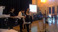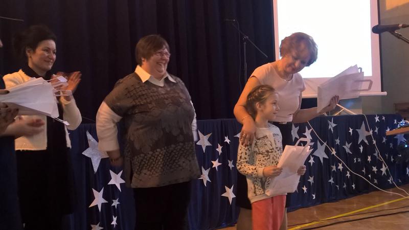 Wreszcie nadeszła długo oczekiwana chwila wręczenia nagrody i głos zabrały pani Elżbieta Prządka i pani Dorota Kilińska. Wręczyły dyplom z gratulacjami i podziękowały za przekazane pieniądze. Powiedziały również, że udział w akcji świadczy o tym, iż w społeczności „Dąbrówki” jest wielu wrażliwych i nieobojętnych na los innych ludzi, którzy potrafią się zjednoczyć dla wspólnego, dobrego celu i razem przyczynić się do poprawy sytuacji dzieci w trudnej sytuacji życiowej.