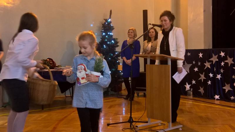 Całość poprowadzili konferansjerzy z czwartej klasy, wprowadzając nas w tematykę Świąt Bożego Narodzenia. Wspominali przy tym wydarzenia, jakie miały miejsce w naszej szkole ostatnimi czasy – Msze Roratnie, adwentowy dzień skupienia, działania szkolnej grupy Caritas oraz pracowników naszej szkoły na rzecz potrzebujących, a także warsztaty , kiermasz bożonarodzeniowy oraz konkurs na kartkę świąteczną. Zostały też ogłoszone wyniki konkursu na szopkę – przyznano cztery wyróżnienia.