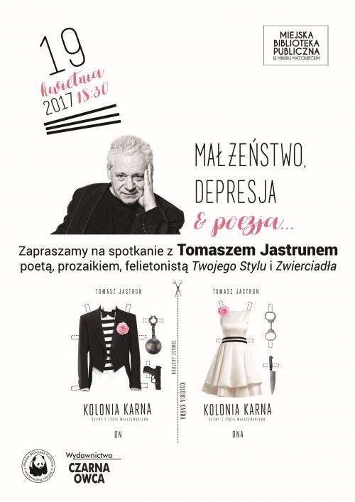 Autor i współautor wielu książek, m.in. „Czułym okiem”, „Sny, które budzą”, „Męskie pół świata”, "Rzeka podziemna", "Osobisty przewodnik po depresji", "Kolonia karna. Sceny z życia małżeńskiego" - Tomasz Jastrun spotka się z czytelnikami w Miejskiej Bibliotece Publicznej 19 kwietnia o godz. 18.30.