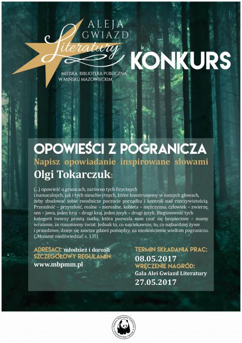 Zapraszamy do napisania opowiadania inspirowanego słowami Olgi Tokarczuk, które cytujemy na plakacie.