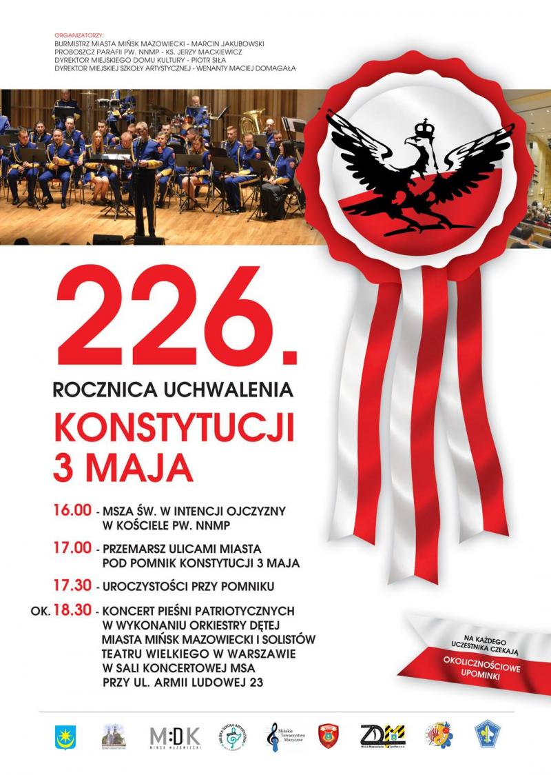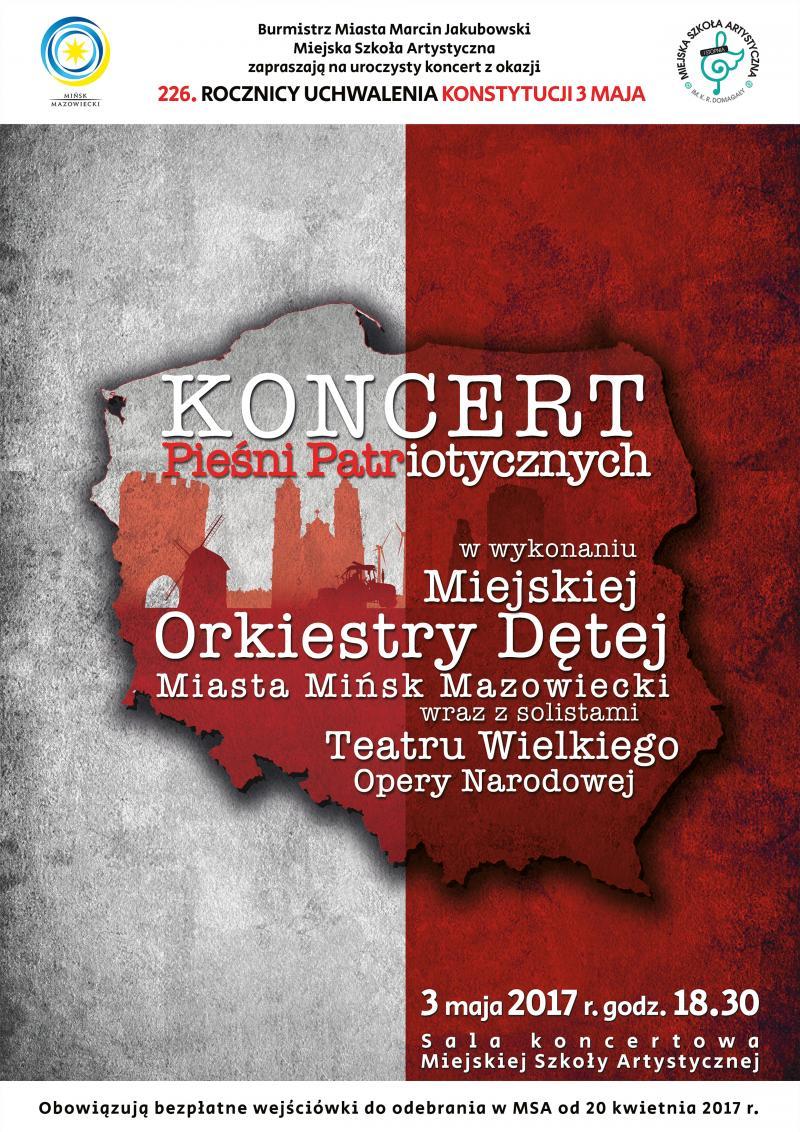 Punktem kulminacyjnym trzeciomajowego święta był Koncert Pieśni Patriotycznych w Miejskiej Szkole Artystycznej. Koncert prowadzony przez dyrygenta Orkiestry Dętej Miasta Mińsk Mazowiecki Marcina Ślązaka uświetniły występy solistów Teatru Wielkiego Doroty Szczepańskiej-sopran, Piotra Rafałko-tenor. Na scenie pojawiła się również Maja Demianiuk oraz Basia Majewska oraz grająca gościnnie na fortepianie Tatiana Żarek.